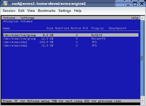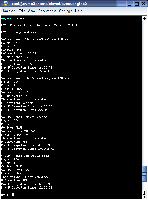 15.2. Example: convert compatibility volumes to EVMS volumes