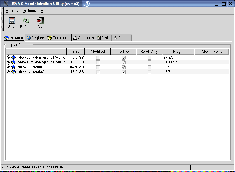 The XFS FSIM lets EVMS users create and manage XFS file systems from within the EVMS interfaces. In order to use the XFS FSIM, version 2.0.0 or later of the XFS utilities must be installed on your system. The latest version of XFS can be found at http://oss.sgi.com/projects/xfs/.